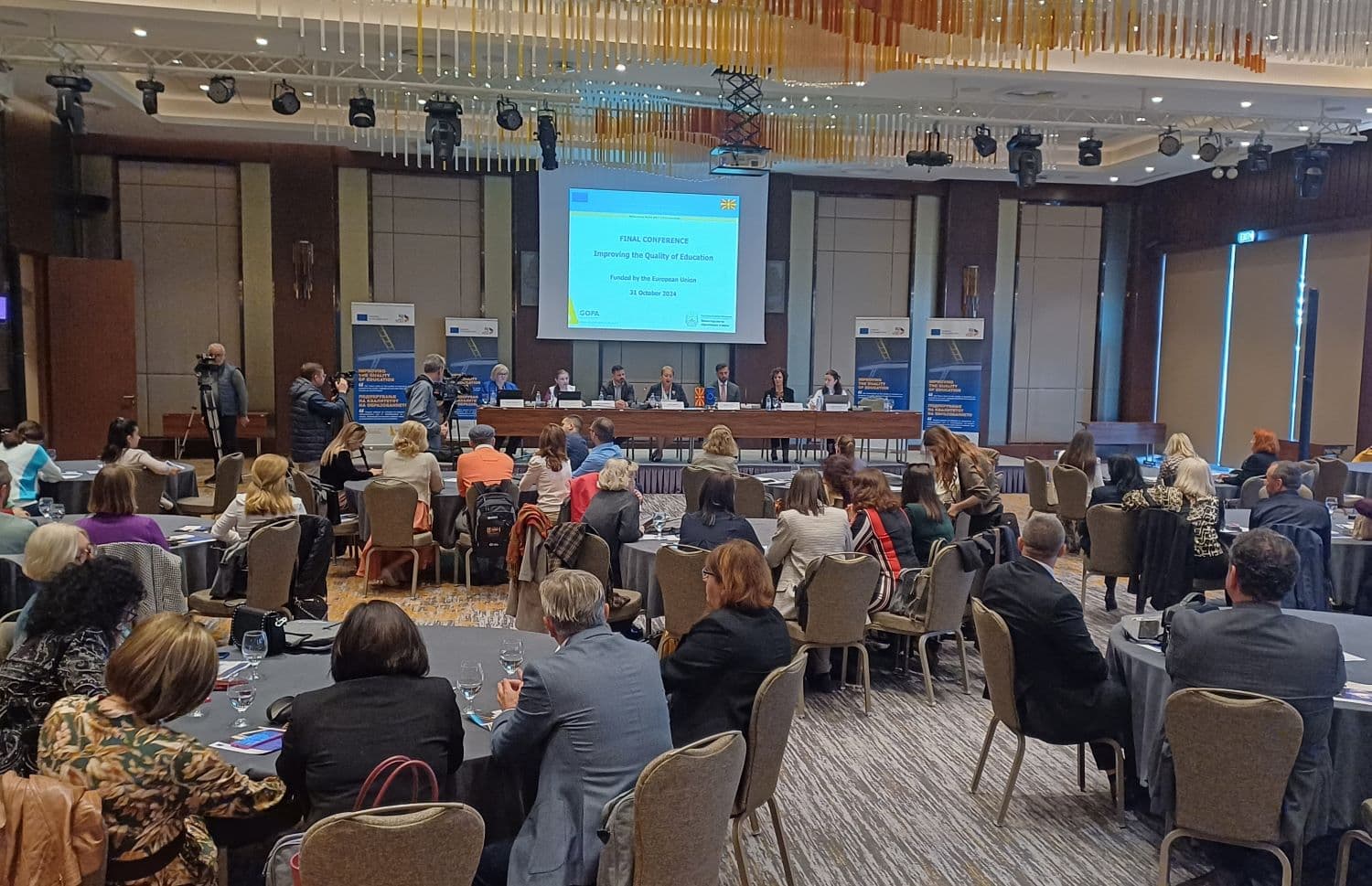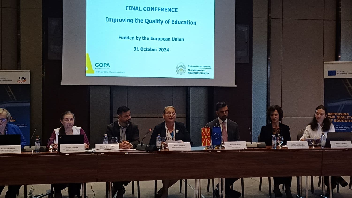 Министерката за образование и наука проф. д-р Весна Јаневска денеска учествуваше на завршна конференција на проектот „Подобрување на квалитетот на образованието“ финансиран од Европската Унија, а насочен кон професионален развој на наставниците, нивна подобра подготвеност за примена на информатичко – комуникациски технологии во наставата и за работа со ученици со попреченост.