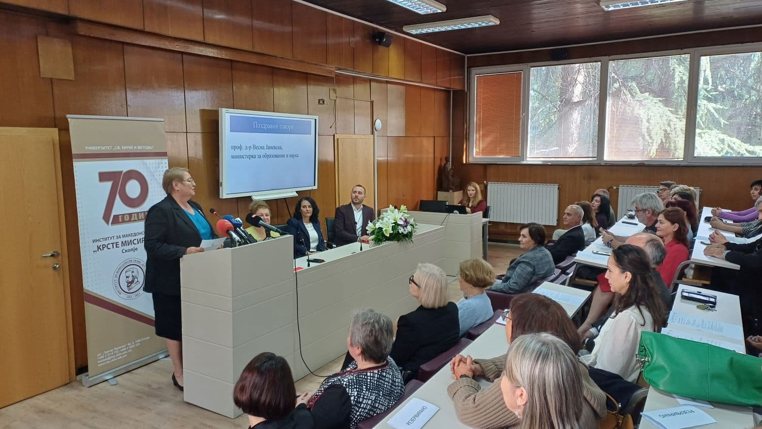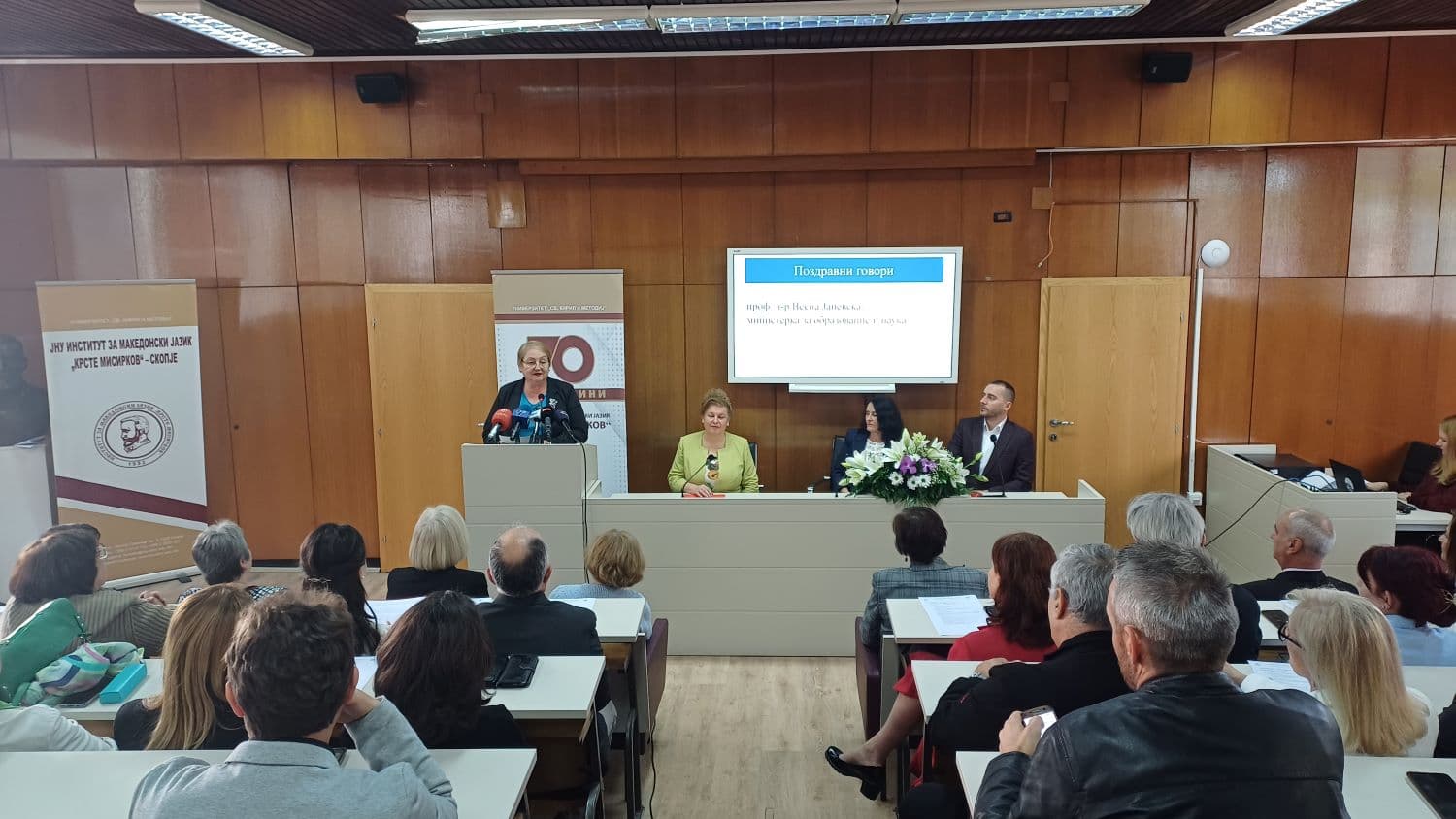 „Ќе продолжиме со активните политики за стипендирање на студенти на програмите по македонски јазик и книжевност, работиме на проширување на можностите за финансирање на научната работа и отворени сме за соработка со сите релевантни чинители за унапредување на образовно-научните можности поврзани со македонскиот јазик“, укажа министерката за образование и наука.