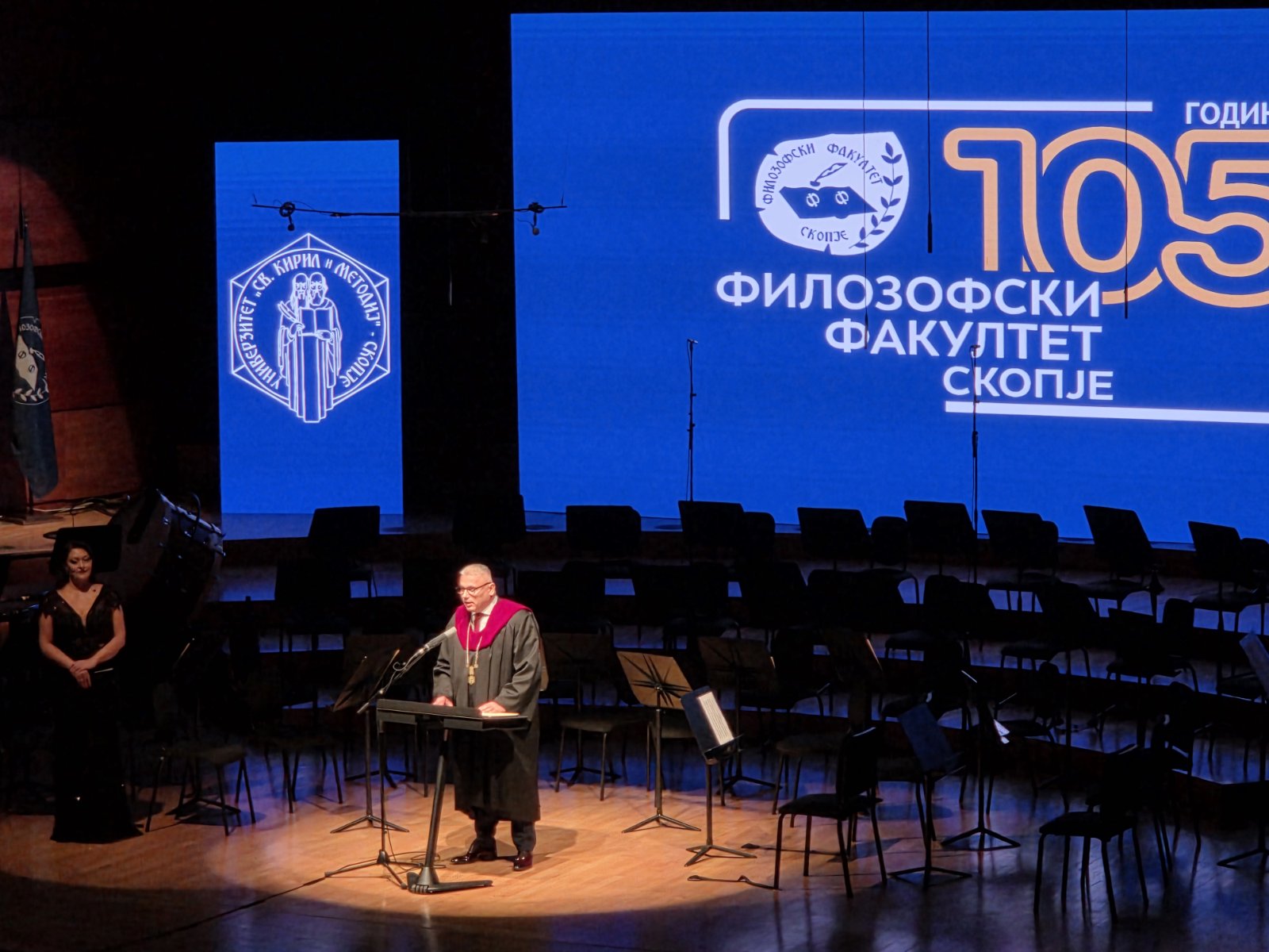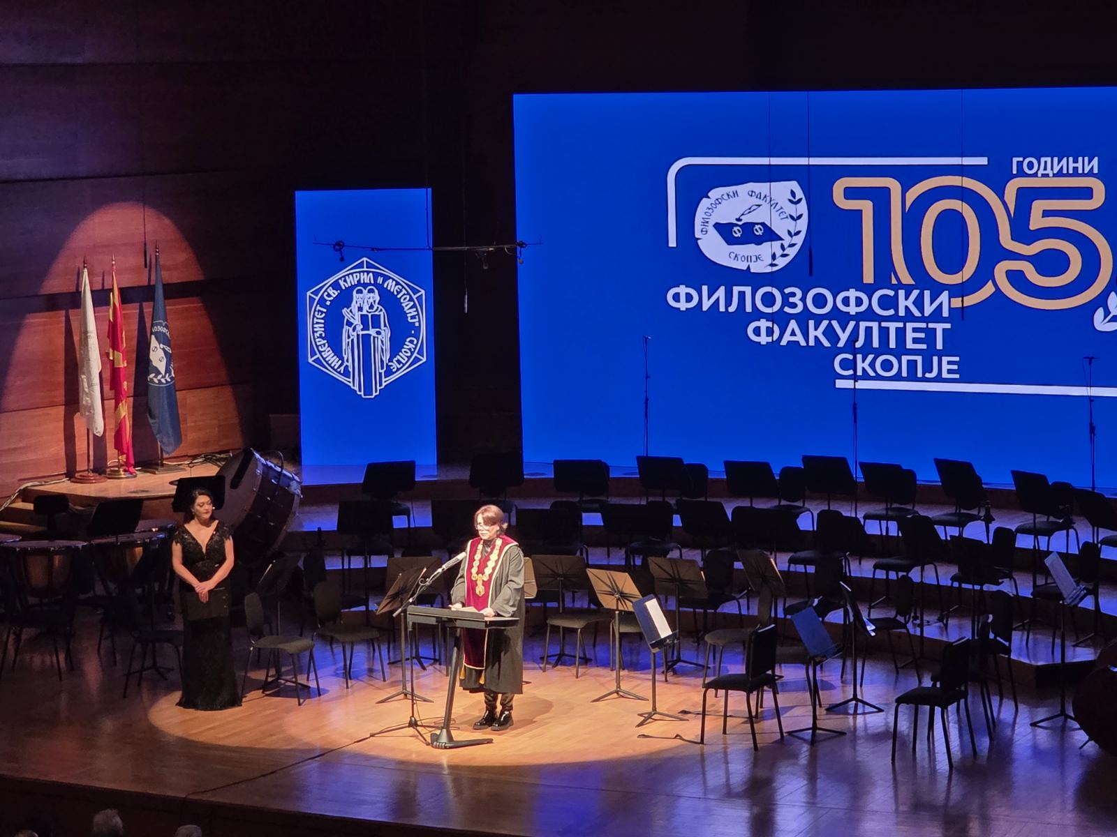 105 години Филозофски факултет значат повеќе од еден век умствен и духовен раст, традиција, научна извонредност и општествено созревање. Тоа е наследство што мора да го чуваме и да го негуваме. Верувам дека оваа институција и понатаму ќе биде водилка на општествената и на хуманистичката мисла, бранител на критичноста и чувар на академската слобода, рече министерката за образование и наука проф. д-р Весна Јаневска на денешната свечена академија со која високообразовната установа го одбележа големиот јубилеј.