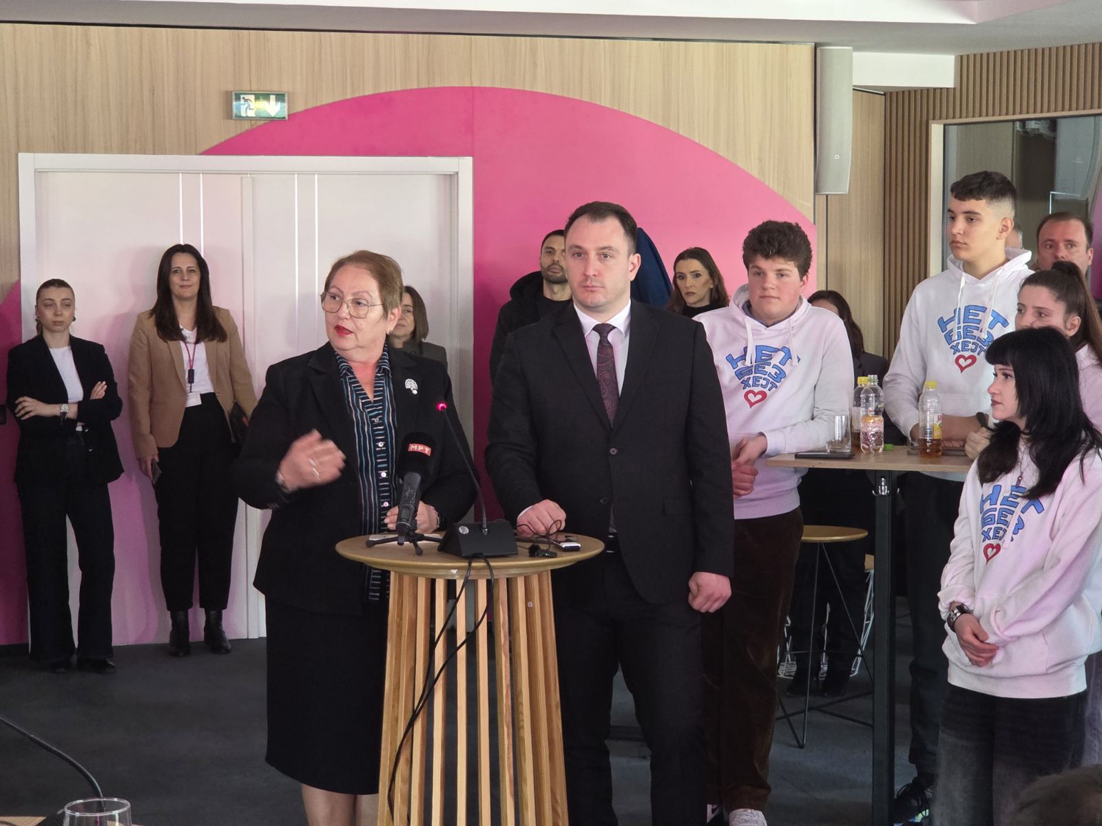 „Како Министерство, работиме на постојано јакнење на системското делување против сите видови на насилство. Секое училиште има законска обврска да побара поддршка од Педагошката служба кога се соочува со несоодветно или проблематично однесување на учениците. За превенирања и поголема поддршка на училиштата ја креиравме е-адресата prijavinasilstvo@mon.gov.mk каде учениците, наставниците, родителите и сите засегнати можат да пријават секаков вид насилство.“ рече министерката Јаневска, упатувајќи благодарност до сите партнери на министерството кои се вклучени во справувањето со врсничкото насилство.
