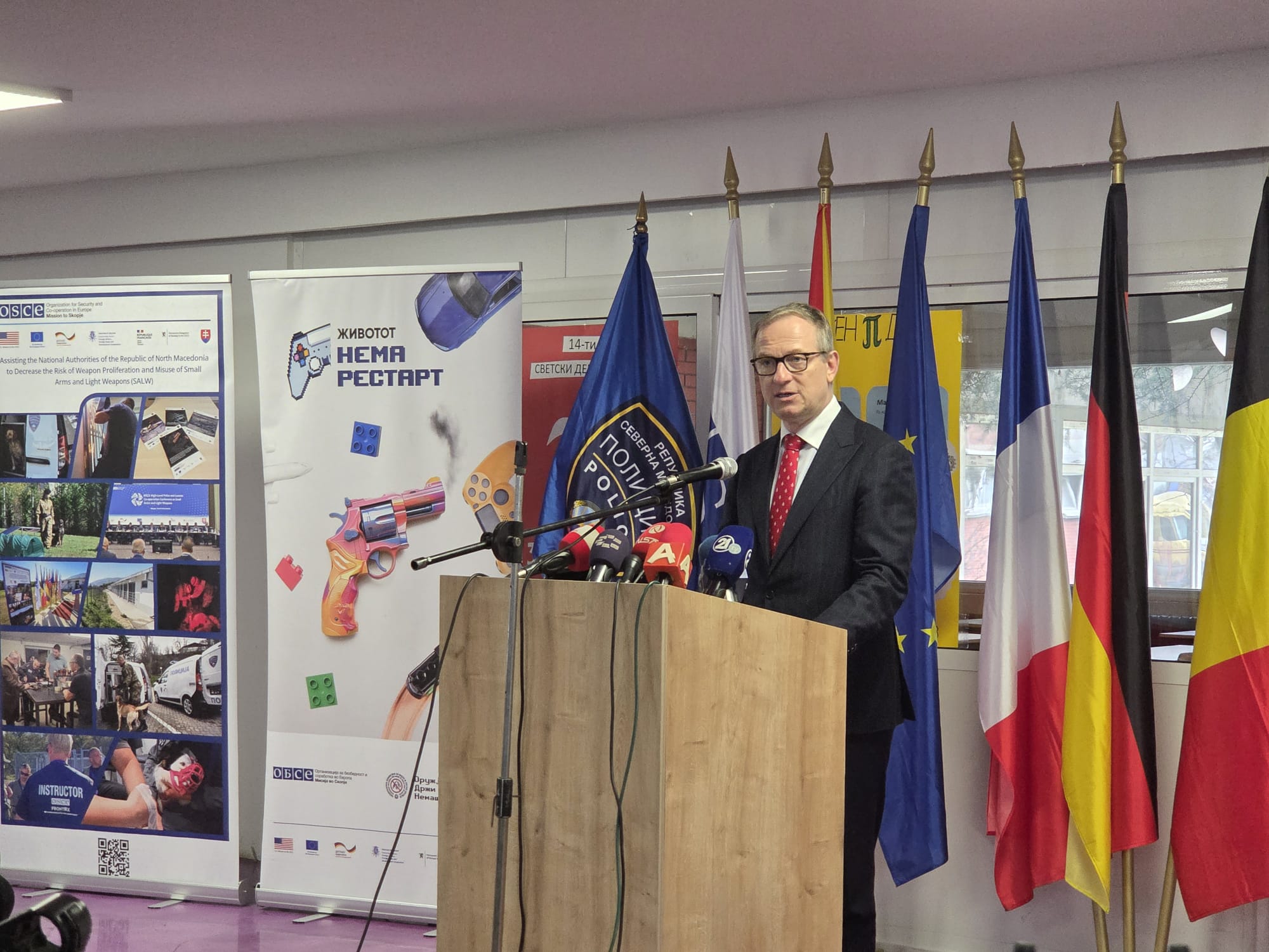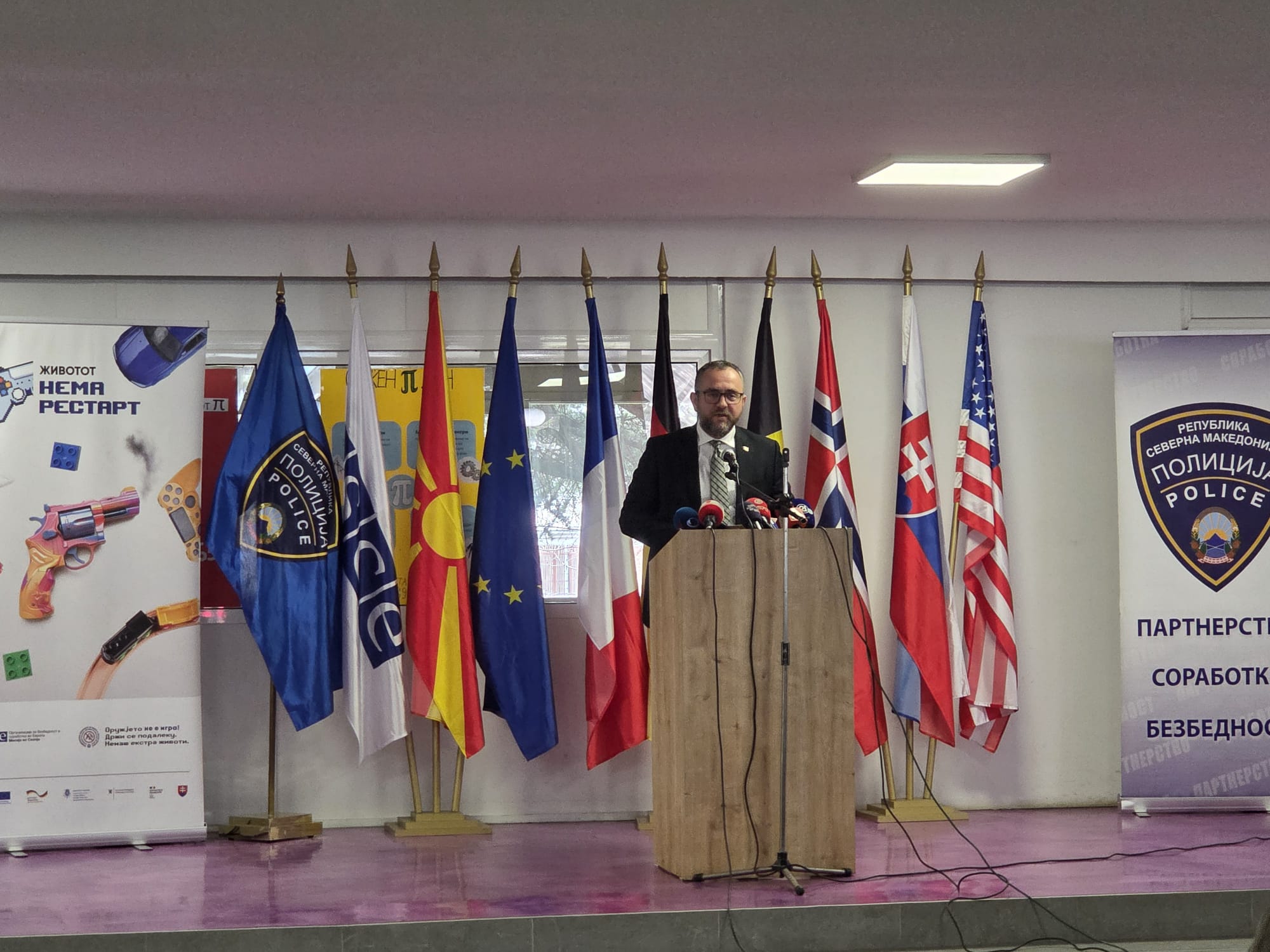 На настанот се обрати и шефот на мисијата на ОБСЕ во Македонија, Килијан Вал, министерот за внатрешни работи Панче Тошковски и началникот на СВР Скопје, Сашо Топаловски.