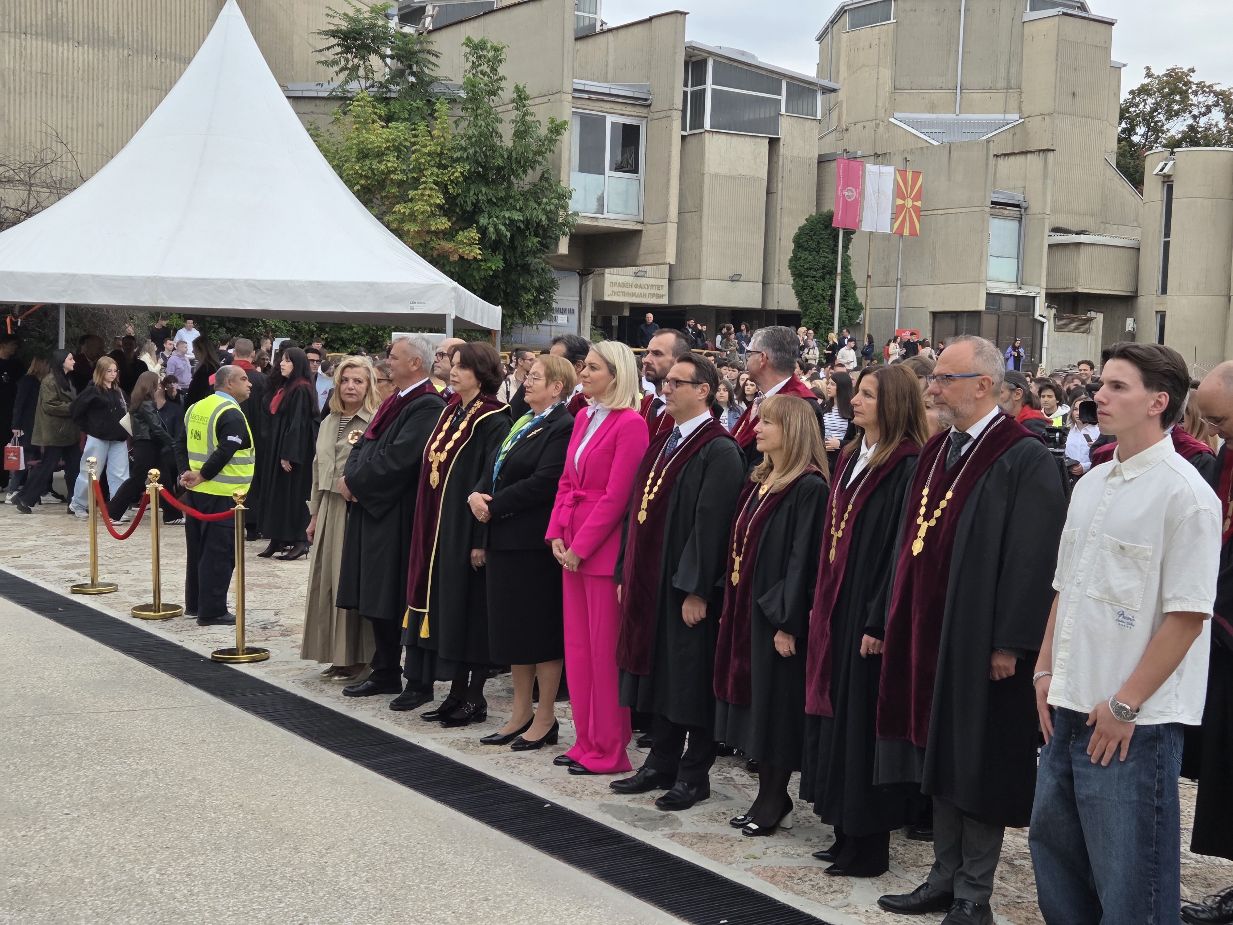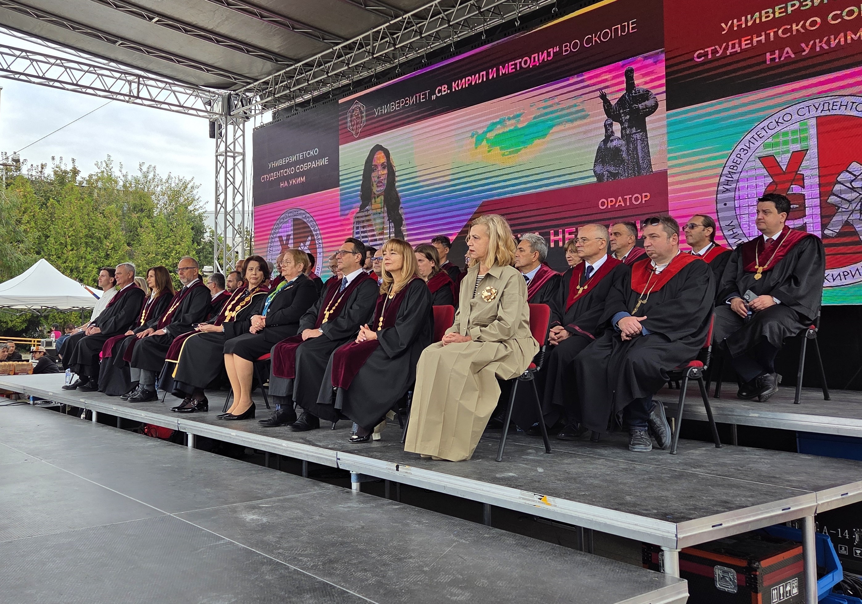 Министерката за образование и наука Весна Јаневска, на првиот академски час ја поздрави новата генерација студенти на Универзитетот „Св. Кирил и Методиј“.