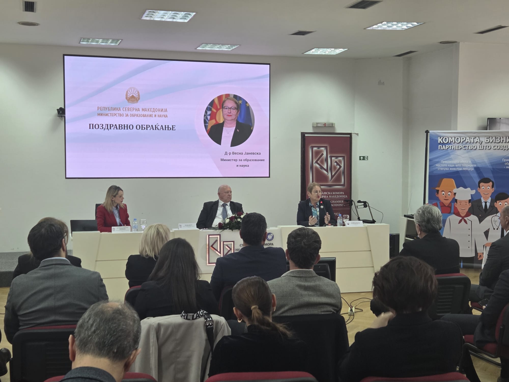 Qeveria dhe komuniteti i biznesit, në fushën e arsimit, kanë përkushtim të përbashkët për krijimin e brezave që jo vetëm posedojnë njohuri, por edhe mund t’i zbatojnë ato, të rinj kreativë dhe përgjegjës që janë të përgatitur për sfidat e tregut modern të punës. Ky është themeli mbi të cilin po ndërtojmë sistemin e arsimit dual, theksoi ministrja e Arsimit dhe Shkencës, Prof. Dr. Vesna Janevska, në aktivitetin promovues ku u diskutuan rezultatet dhe progresi i konceptit të arsimit dual, të organizuar nga Oda Ekonomike e Maqedonisë së Veriut.